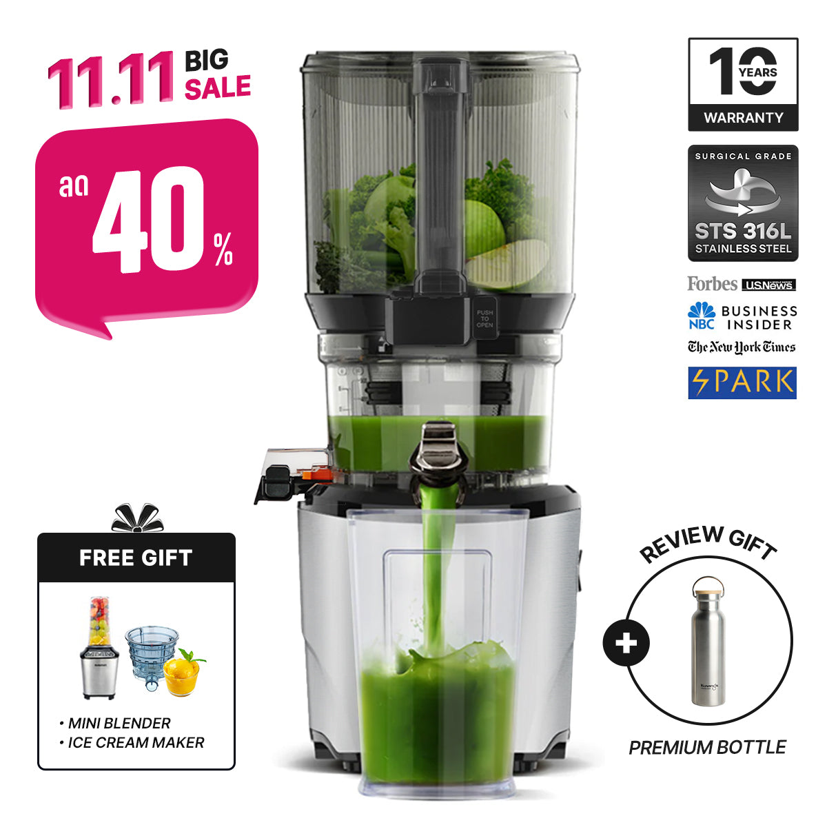 เราทุกคนรู้ถึงประโยชน์ของการคั้นน้ำ แต่เราก็รู้เวลาที่ใช้ในการเตรียมด้วยเช่นกัน นั่นมันอดีตไปแล้ว! AUTO10S Slow Juicer ใหม่เป็นตัวเปลี่ยนเกมและประหยัดเวลา!