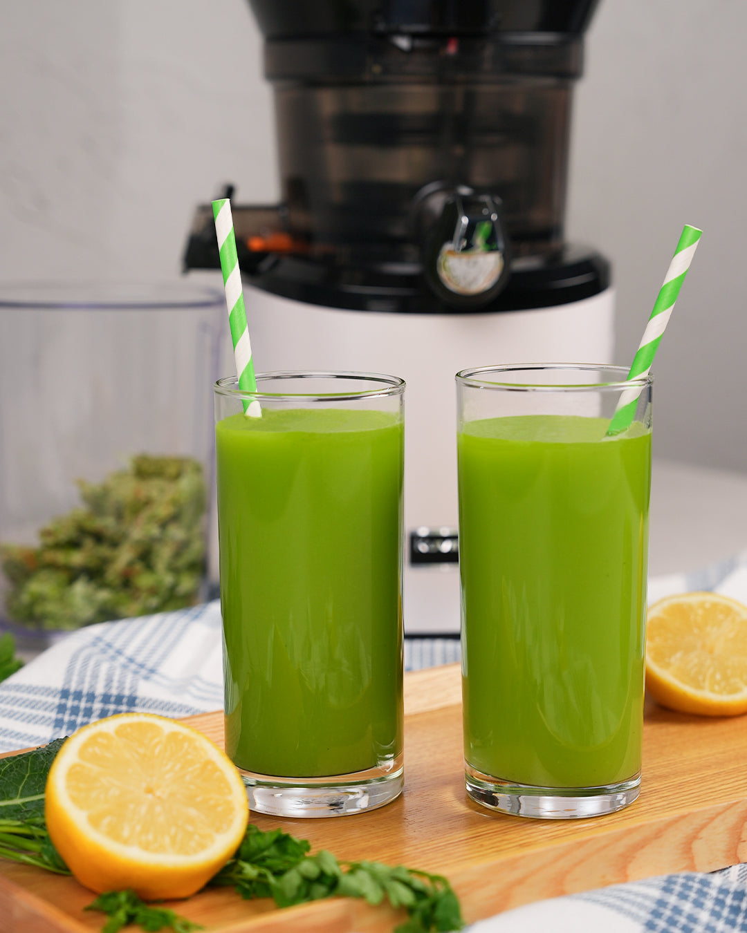 - คั้นส่วนผสมทั้งหมดด้วยเครื่องคั้นน้ำผลไม้แบบกดเย็นของ Kuvings คนให้เข้ากันและเสิร์ฟทันที