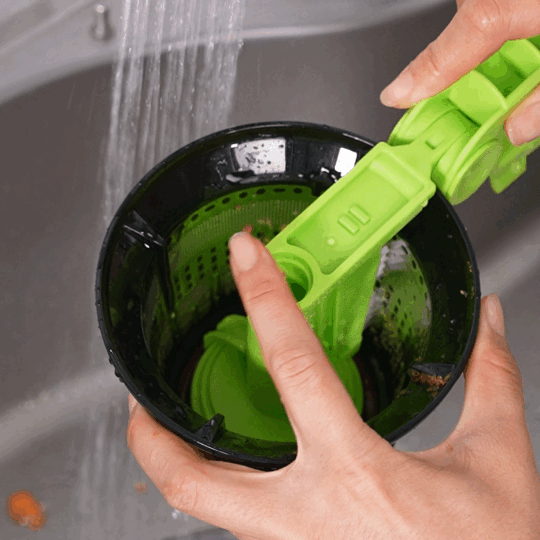 หลังจากการคั้นน้ำเสร็จ เพียงแค่กดปุ่มแล้วหมุนด้ามจับทวนเข็มนาฬิกา ก็สามารถเปิดช่องป้อนอาหารได้อย่างง่ายดาย