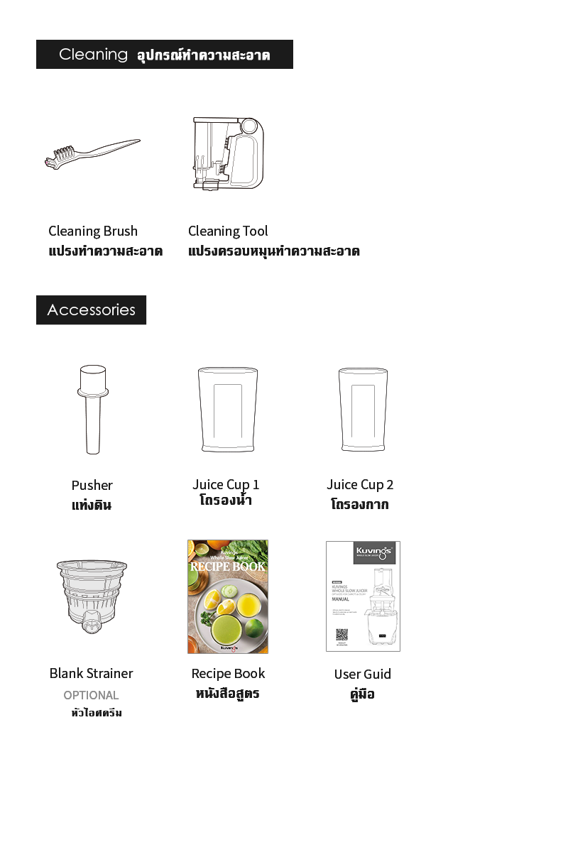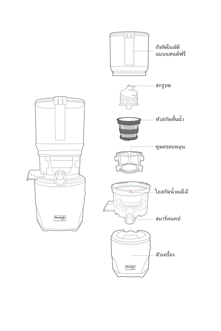 อุปกรณ์ทำความสะอาดของ Kuvings สามารถ ถอดแยกชิ้นส่วนได้ ทำให้ใช้งานง่ายและสะดวกสบาย