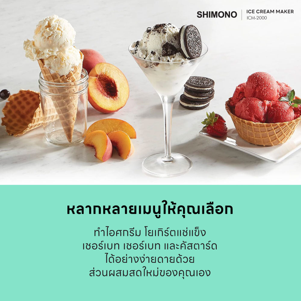 ขอแนะนำ SHIMONO Ice Cream Maker ICM-2000 เครื่องทำไอศกรีมระบบคอมเพรสเซอร์ ที่จะเปลี่ยนทุกความต้องการของคุณให้เป็นจริงได้ในพริบตา ไม่ต้องแช่โถข้ามคืน ไม่ต้องรอ! แค่คุณมีไอเดีย เราก็พร้อมเสิร์ฟความอร่อยให้ทันทีที่ใจต้องการ