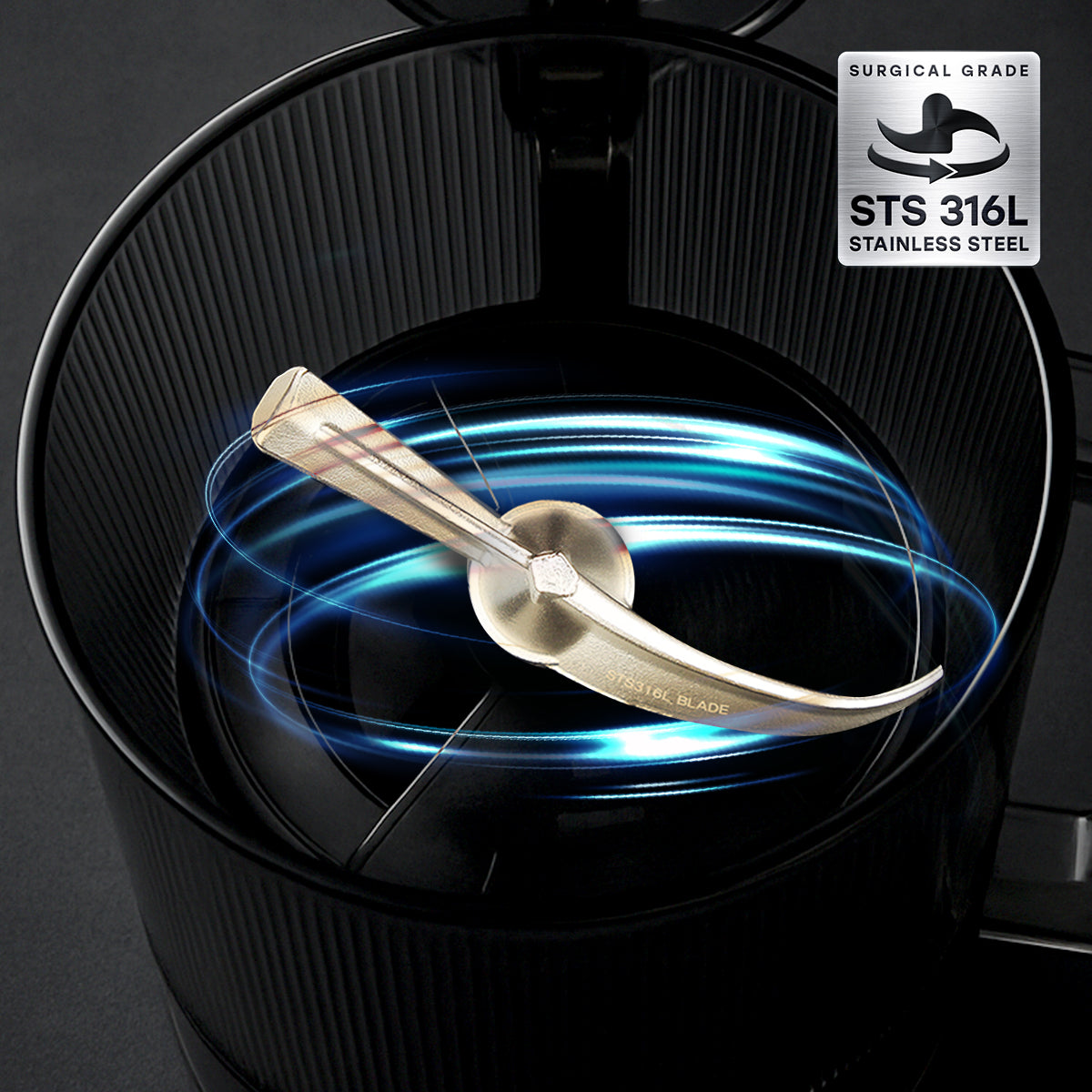 AUTO10S มาพร้อมกับใบมีดสแตนเลสที่สามารถสับส่วนผสมแข็งและส่วนผสมทั้งหมดได้อย่างมีประสิทธิภาพ นอกจากนี้ยังทนทานและทำความสะอาดง่ายอีกด้วย