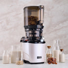 เครื่องสกัดเย็นแบบรอบต่ำที่สะดวกสบายด้วยความจุภาชนะที่จุได้ถึง 3000cc ใหญ่ที่สุดในโลกและฟังก์ชันการตัดแบบอัตโนมัติ