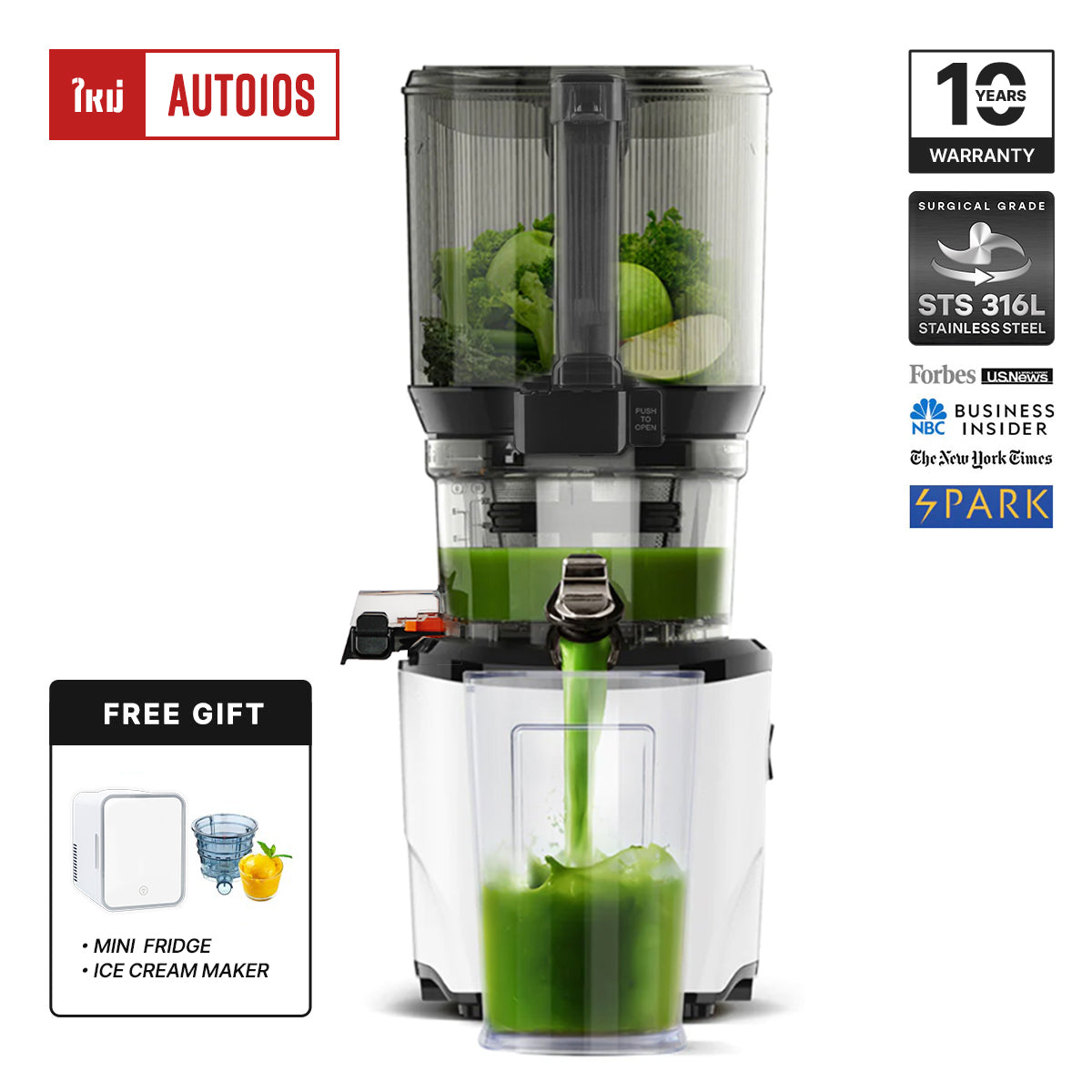 I really like the AUTO10S model. The large blending jar can hold plenty — even a whole watermelon or pineapple! Since it doesn’t use heat, it preserves all the nutrients from fruits and vegetables. Each part can be easily detached and cleaned. I’m so glad I bought it during the Chinese New Year sale — I got lucky with a special discount and lots of premium gifts. Let’s make healthy recipes together!