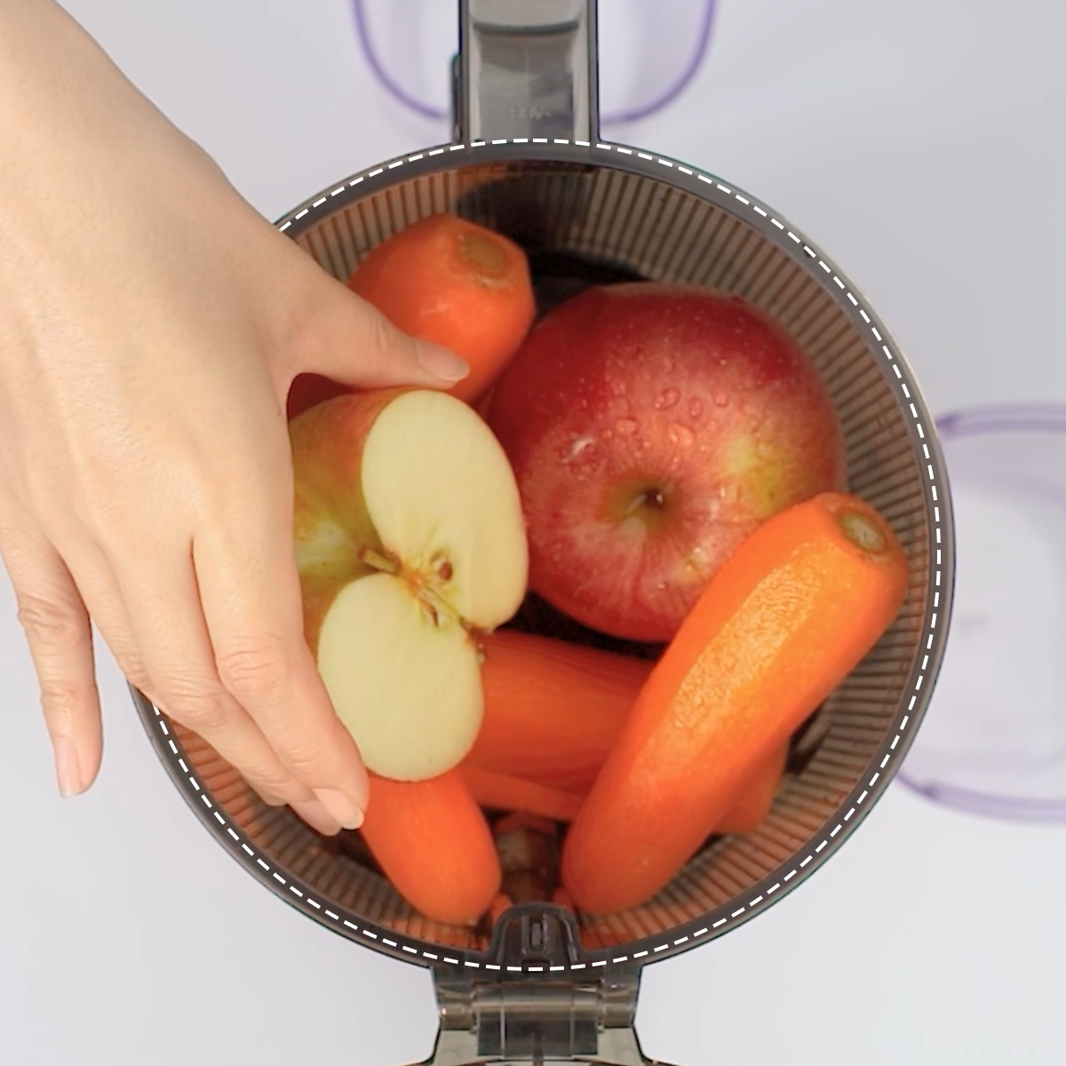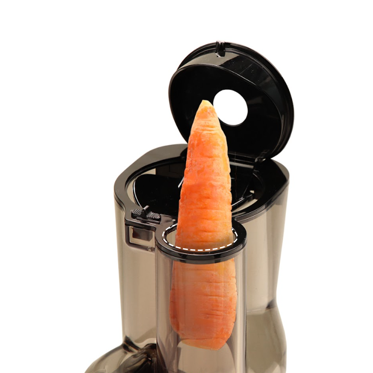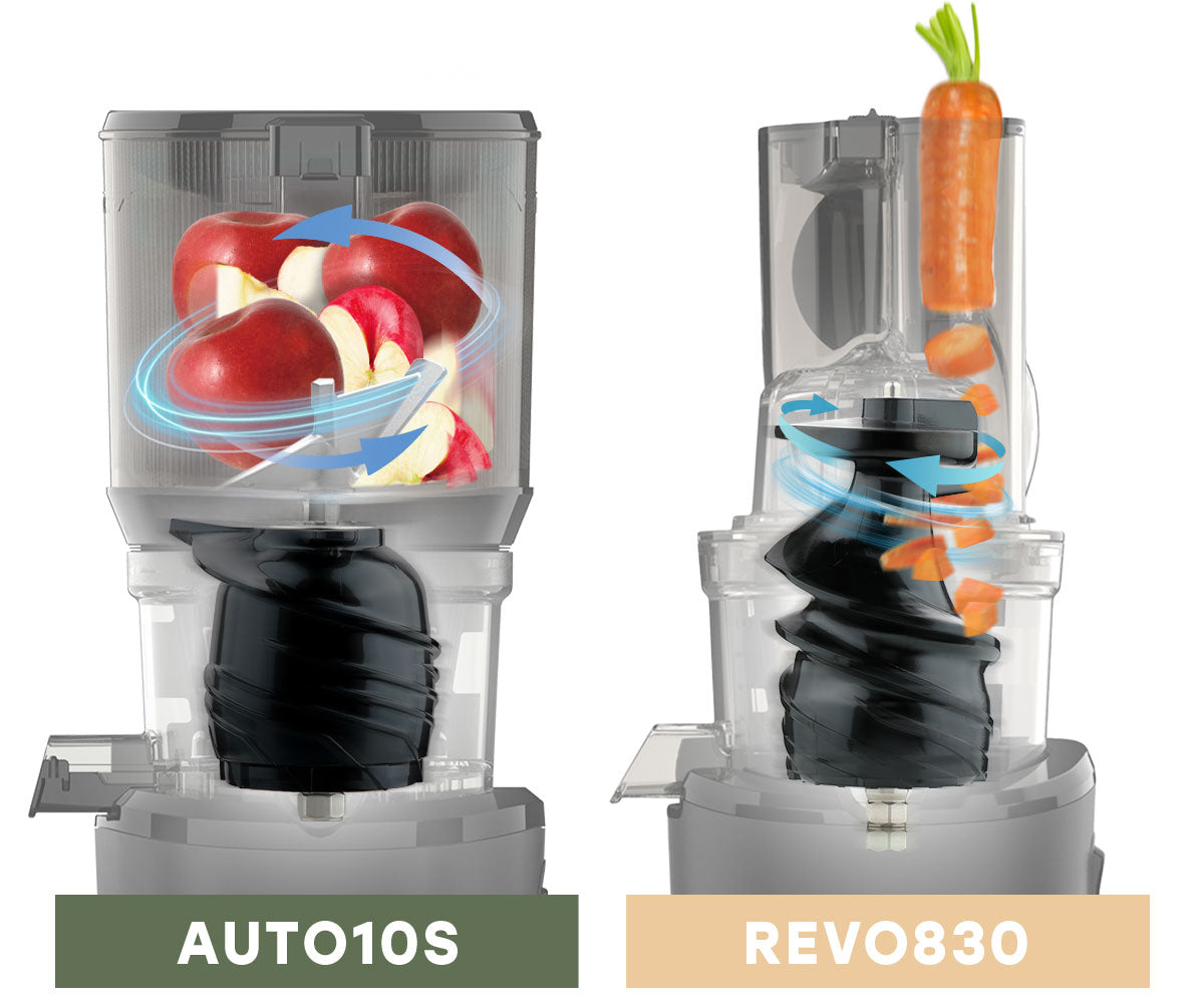 เหมาะสำหรับแครอทและขึ้นฉ่าย REVO830 มีรางตัดอัตโนมัติแบบใหม่ที่จะสับส่วนผสมที่มีเส้นใยยาวโดยอัตโนมัติ กลไกการสับแบบไร้ใบมีดจะตัดและกดชิ้นที่มีขนาดสมบูรณ์ในแต่ละครั้ง ช่วยลดขยะอาหารพร้อมทั้งเพิ่มผลผลิตน้ำผลไม้สูงสุด
