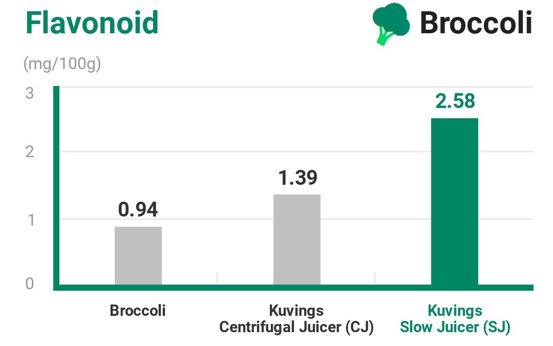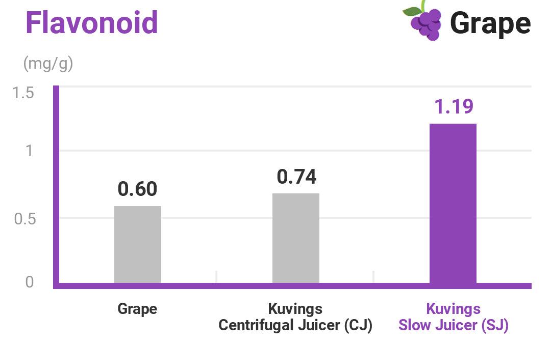 น้ำผลไม้ที่สกัดจากเครื่องคั้นน้ำผลไม้แบบช้ามีปริมาณฟลาโวนอยด์สูงที่สุดอันเป็นผลมาจากน้ำที่สกัดจากเปลือกองุ่นและเมล็ดพืช