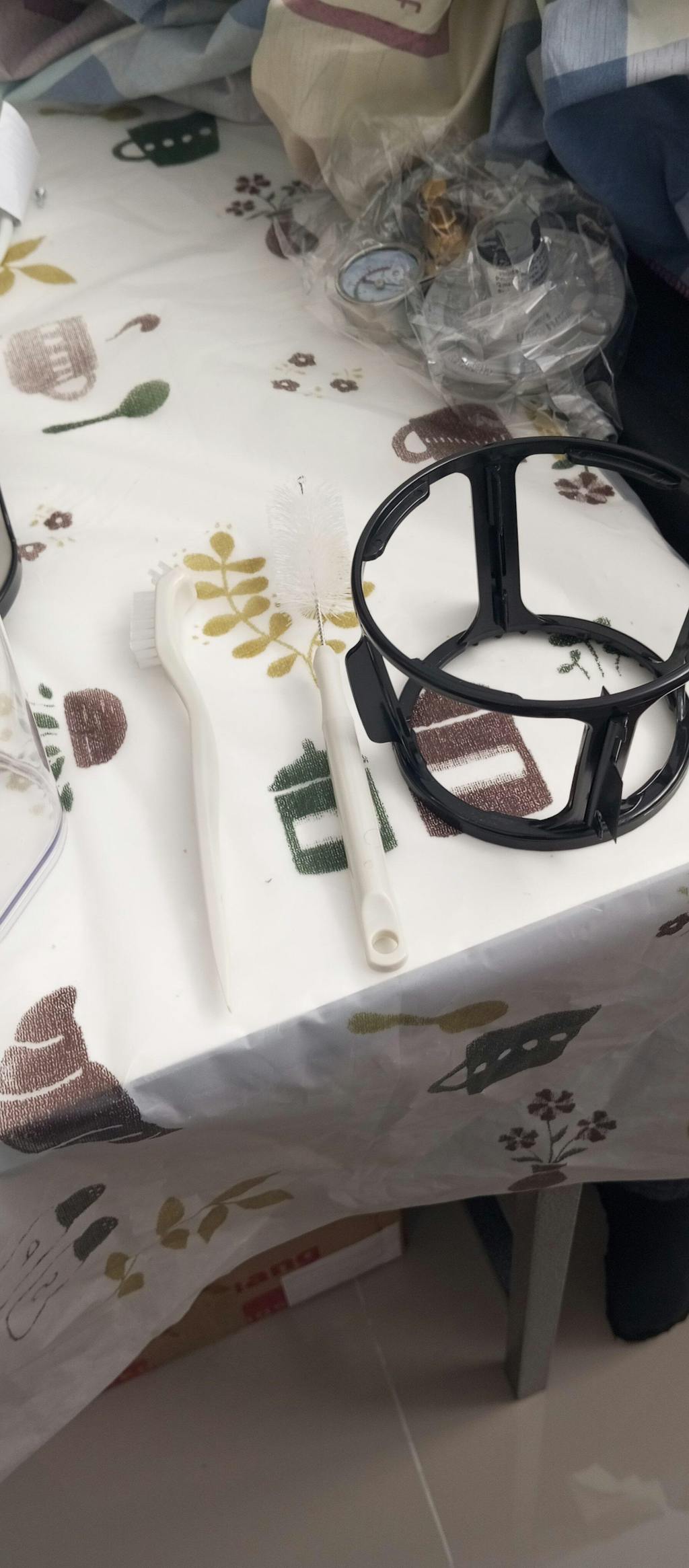คุณสามารถทำความสะอาดสิ่งตกค้างในที่กรองน้ำผลไม้ได้อย่างง่ายดายวางแปรงทำความสะอาดแบบหมุนและที่กรองน้ำผลไม้เข้าด้วยกัน แล้วบิดเข้าหากัน